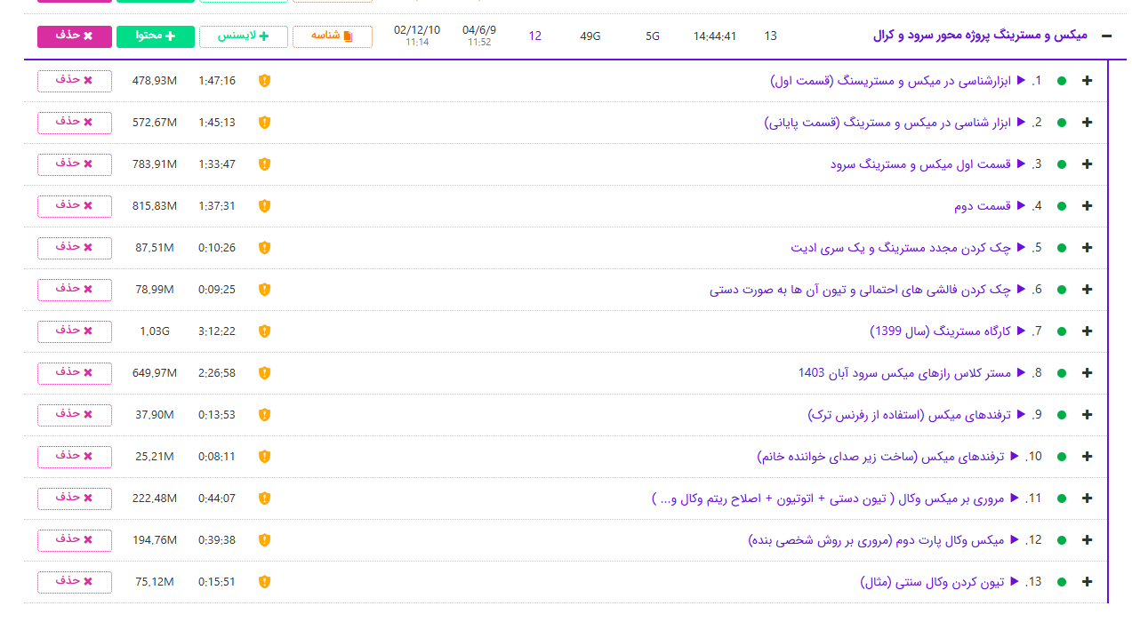سر فصل های دوره بی نظیر میکس و مستریگ سرودهای استودیویی :